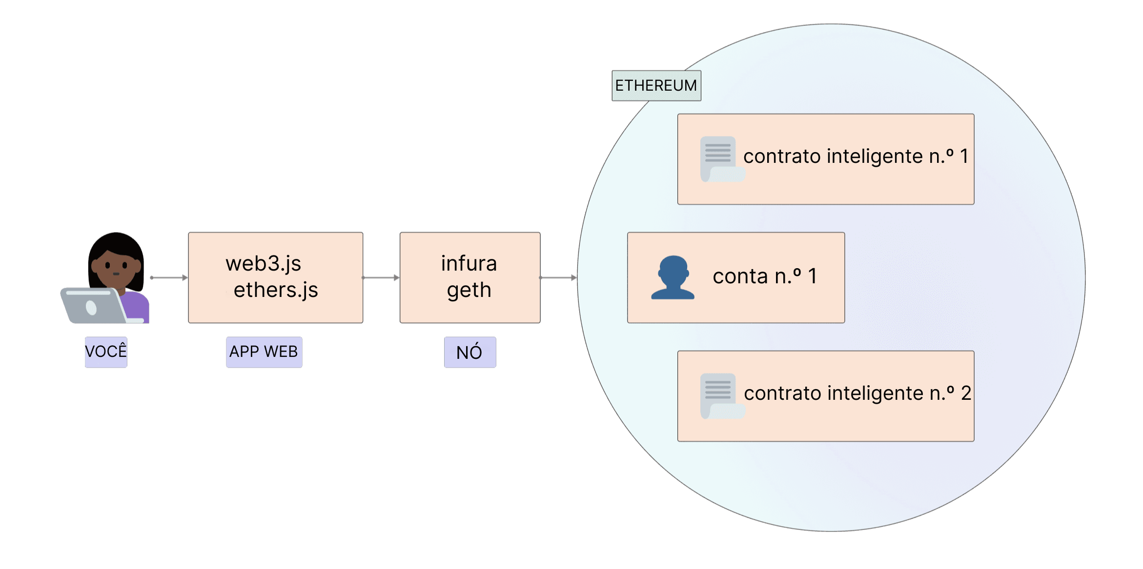 O Ethereum é uma rede distribuída de computadores (conhecidos como nós) executando softwares que podem verificar blocos e dados de transação. O software tem de ser rodado no seu computador para ele se tornar um nó Ethereum. Existem dois pedaços separados de software (conhecidos como 'clientes') necessários para formar um nó.