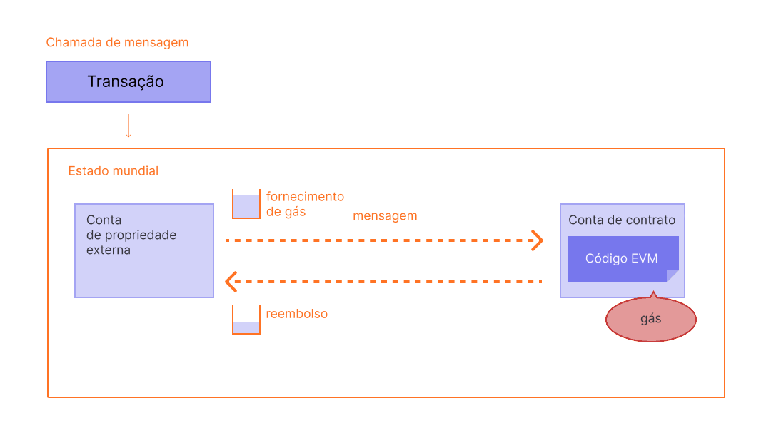 - Execução de um contrato: uma transação que interage com um contrato inteligente implantado. Nesse caso, o endereço "para" é o endereço do contrato inteligente.