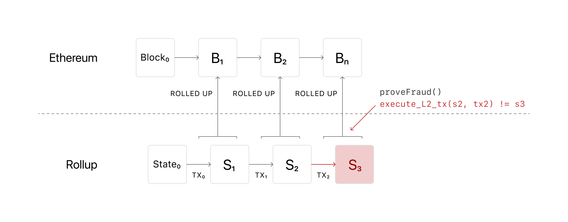 Optimistični zvitki so vzporedno z glavno verigo Ethereum na plasti 2. Lahko ponudijo izboljšave pri razširljivosti, saj privzeto ne izvajajo nobenega računanja. Namesto tega, po transakciji, predlagajo novo stanje glavnemu omrežju ali "notarsko overijo" transakcijo.